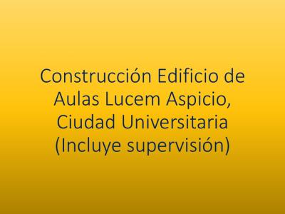 El proyecto LUCEM ASPICIO contempla la construcción de un Edificio compuesto por cuatro (4) niveles, de los cuales tres (3) niveles estarán destinados a aulas académicas y un (1) nivel a oficinas administrativas, así como la edificación de dos (2) niveles de estacionamiento. En conjunto, la obra comprende un área aproximada de 22,000 m² de construcción.