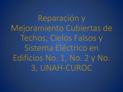 Se realizarán las siguientes actividades: Reposición de la cubierta de techo en los Edificios, instalación de cielo falso en 7 aulas del Edificio No. 1 y 8 aulas del Edificio No. 2, instalación de 30 ventiladores de techo; reubicación de 16 ventiladores de pared existentes, luminarias y proyectores existentes en cada una de las aulas, construcción de un techo con cubierta de policarbonato en un ubicada frente al Edificio No. 3. Así mismo, se impermeabilizarán las losas de los Edificios.