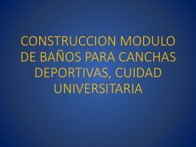 El Proyecto: Módulo de baños para canchas deportivas, Ciudad Universitaria, surge como respuesta a la necesidad de contar con baños y vestidores cerca de las canchas, mismas que son utilizadas a diario por diversos usuarios que requieren este tipo de espacios en una ubicación adecuada para desarrollar las actividades de forma óptima.