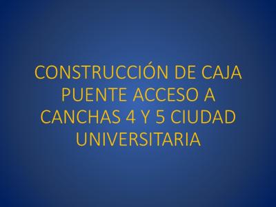 El proyecto consiste en la construcción de una caja puente de concreto reforzado y concreto ciclópeo sobre la quebrada la orejona, con el objetivo de crear un paso de comunicación entre la red vial del interior de Ciudad Universitaria y las canchas deportivas 4 y 5 ubicadas al norte de la Universidad Nacional Autónoma de Honduras, cuyo acceso actual es por el Boulevard Juan Pablo II.