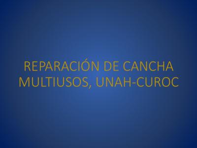 El proyecto consiste en la reparación de la Cancha Multiusos, con un área de 823.00 metros cuadrados, la cual comprende la construcción de un firme de concreto de 3000 psi, reparación de malla ciclón y pintura de postes en cerco perimetral, reparación de grietas en paredes, repello y pulido en paredes, aplicación de pintura en paredes, marcaje en Cancha Multiusos y ampliación de boquetes e instalación de rejillas para evacuación de aguas lluvias.