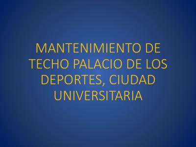El proyecto consiste en la realización de obras para el mantenimiento de la cubierta de techo del edificio Polideportivo del Complejo Deportivo Universitario, con el objeto de mejorar las instalaciones, garantizar el funcionamiento de la cubierta y proveer una correcta imagen arquitectónica de exterior del edificio por su cubierta.