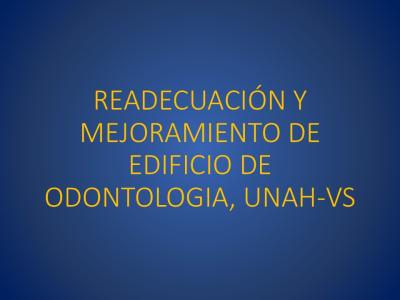 Consistió en mejorar el funcionamiento y la bioseguridad de las clínicas odontológicas de pregrado a través de la redistribución de las sillas Odontológicas, la implementación del sistema succión, mejoras al sistema de energía, suministro de agua, drenaje y aire médico de las sillas odontológicas, así como la protección de radiaciones en los cuartos de rayos x.